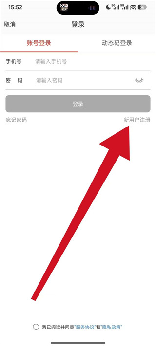 3、在登录界面点击新用户注册,进入手机号注册页面。