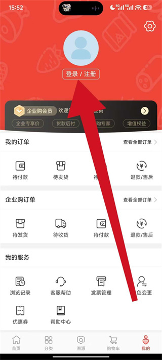 2、在个人页面中点击登录注册,进入登录操作界面。