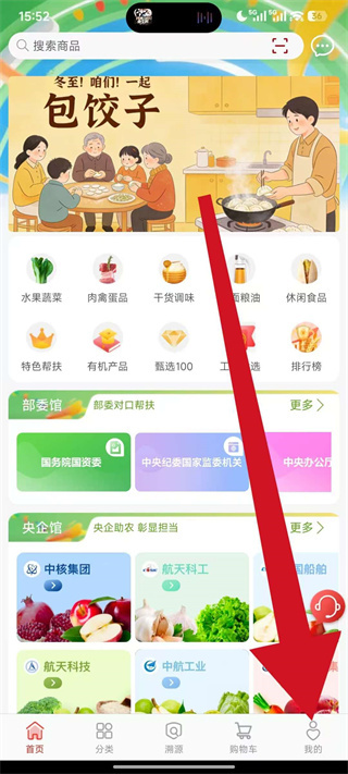 1、打开央企消费扶贫,点击首页底部导航栏的我的,进入个人页面。