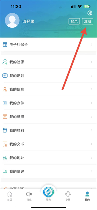 2、在个人界面的右上角,找到注册按钮并点击,进入账号注册的信息填写页面。
