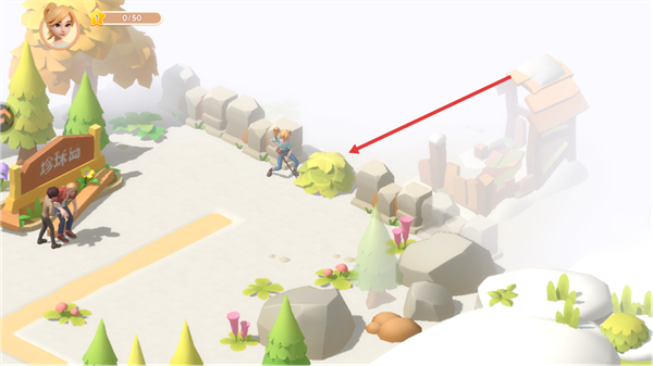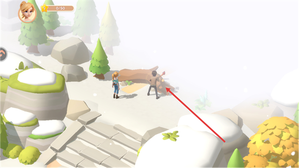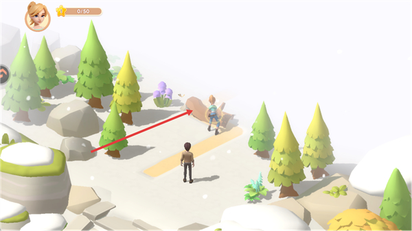 2、跟随指引向目标区域移动,探索森林场景,推进冒险进度。