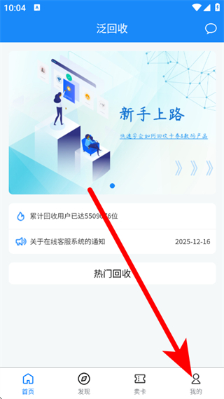 1、在泛回收,点击底部我的,进入个人中心页面。