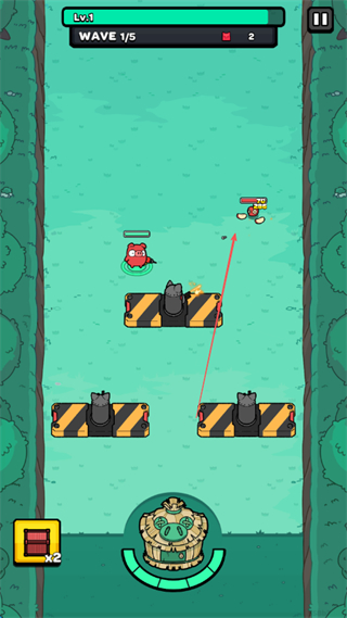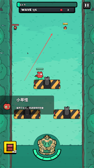 2、操控炮台攻击来袭的小苹怪,削减怪物数量,推进WAVE1/5进度。
