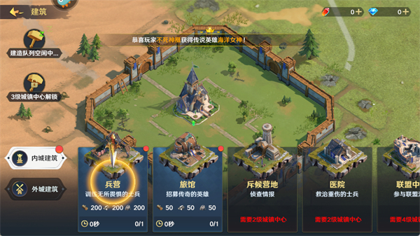 8、然后再城池中选择合适的位置建造兵营,之后玩家只要跟随任务引导一步一步的发展即可,不断壮大自己的城池和兵力,击败更多的对手。