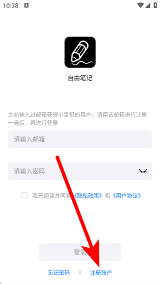 3、在登录界面,点击注册账户,进入账户注册页面。