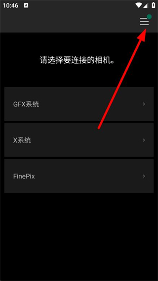 1、打开富士相机app,找到并点击页面右上角的菜单按钮。