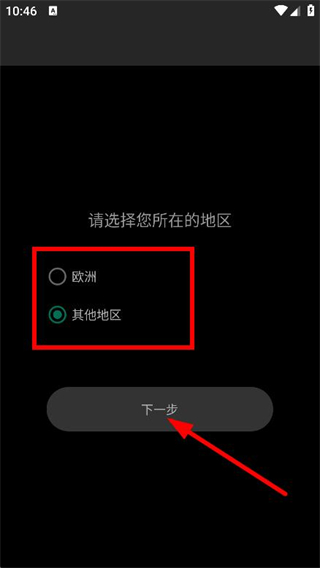 3、在地区选择页面,选中目标地区,点击下一步完成设置。
