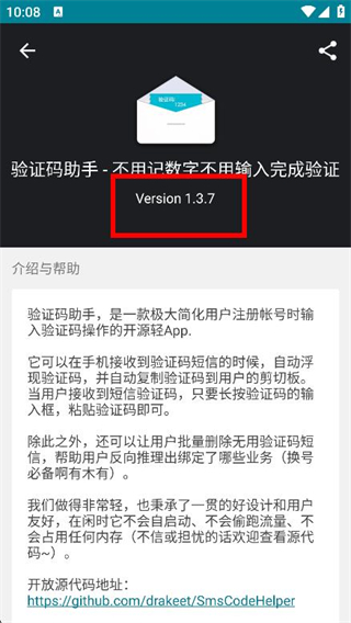 - 开发:短信验证码助手 v1.3.7 安卓版