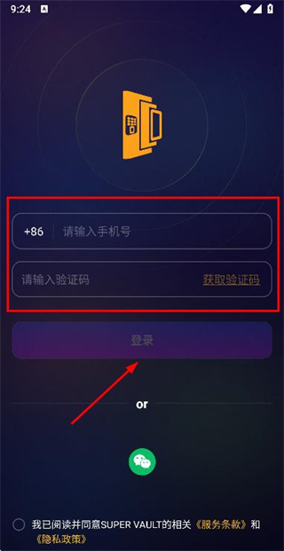 3、在登录页面填写手机号和验证码,勾选协议后,点击登录完成账号登录操作。