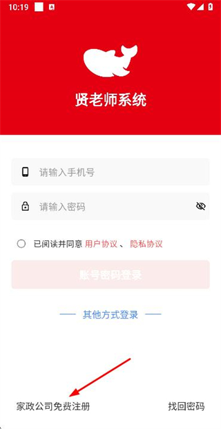 2、在登录页面点击家政公司免费注册选项,进入家政注册申请页面。