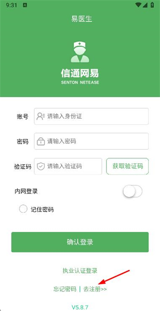 1、在易医生登录页面点击去注册选项,进入注册页面。