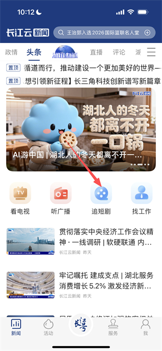 1、在长江云新闻首页点击追剧选项,进入微短剧列表页面。