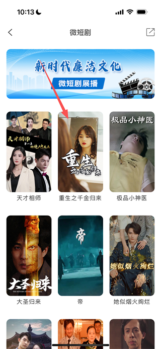 2、在微短剧列表页面选择目标短剧,进入该剧播放页面。