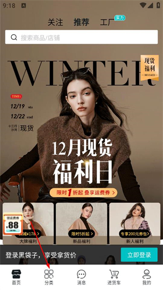 2、在分类页面选择目标商品类别,进入对应商品列表页。