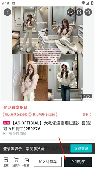 3、在商品列表页选择目标商品,进入该商品详情页面。