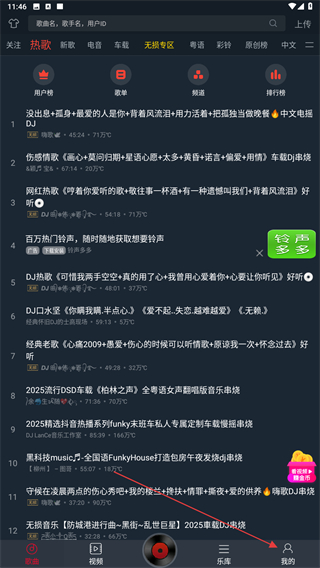 1、打开DJ多多,在主界面点击我的按钮,进入对应的个人中心页面。