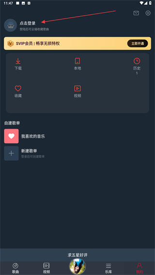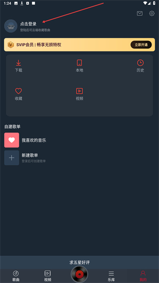 2、在个人中心页面上方找到点击登录选项,点击触发登录方式选择界面。