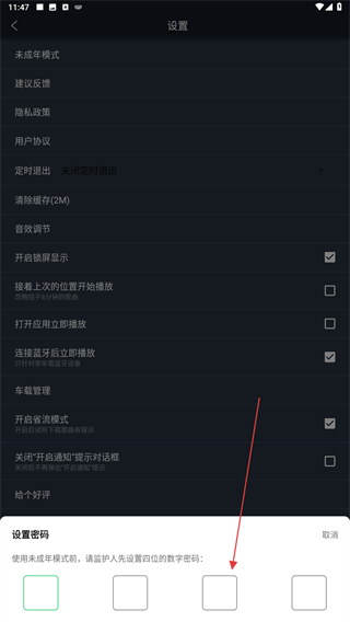 4、在下方弹出的内容中,设置密码后即可开启成功。