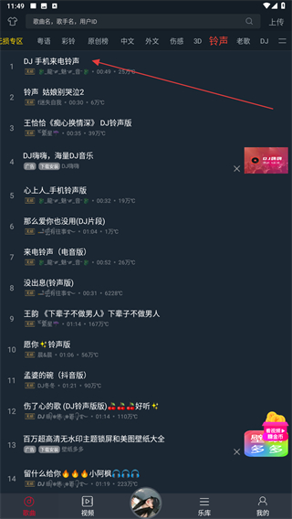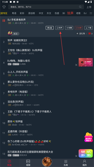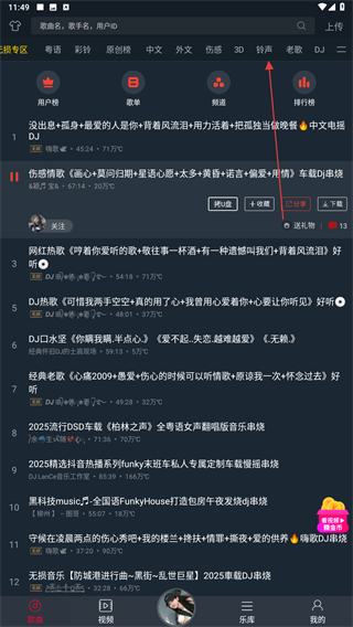 1、打开DJ多多APP,进入时点击上方铃声的标签。