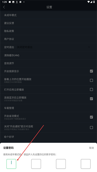 4、对应界面输入保护密码,完成后即可启用未成年模式。
