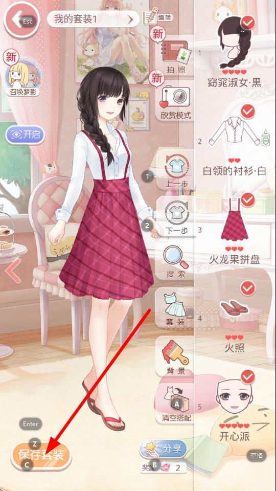 3、套装搭配完成后,点击左下角保存套装按钮,将搭配好的套装保存,方便后续直接调用该套装进行展示或参与游戏内容。