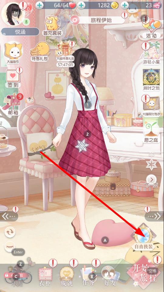 1、打开奇迹暖暖游戏,在主界面点击右下角自由换装按钮,进入换装操作页面,这是开启套装换装的关键入口。