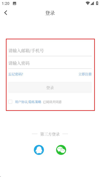 3、在登录页面填写信息,勾选协议后点击登录完成操作。