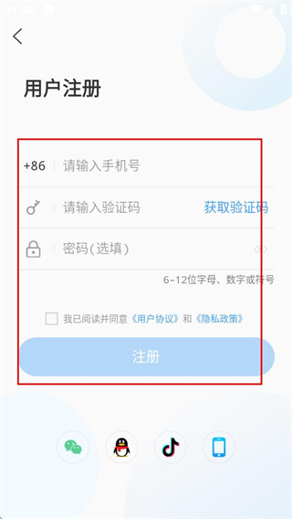 4、在注册页面填写信息并勾选协议后,点击注册完成账号注册。