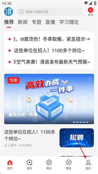 1、在云上滑州首页点击我的选项,进入个人中心页面。