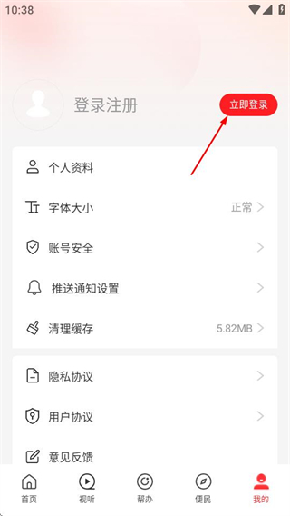 2、在个人中心页面点击立即登录按钮,进入免密登录页面。