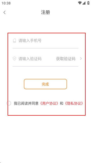 4、在注册页面填写信息并勾选协议后,点击完成按钮完成账号注册。