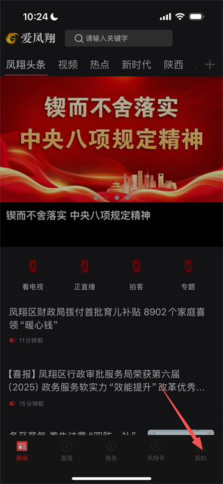 1、在爱凤翔首页点击我的选项,进入个人中心页面。