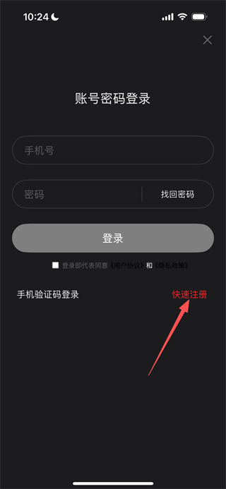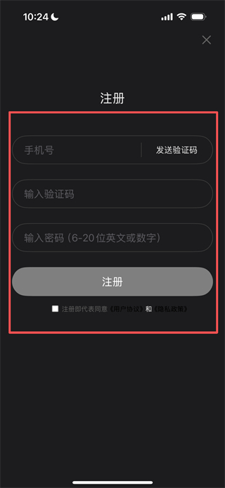 4、在注册页面填写信息并勾选协议后,点击注册完成账号注册。