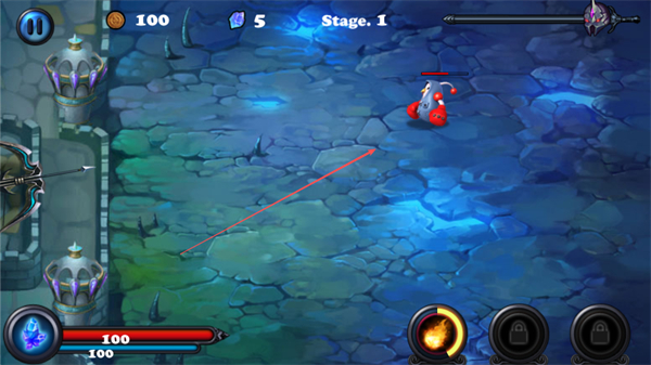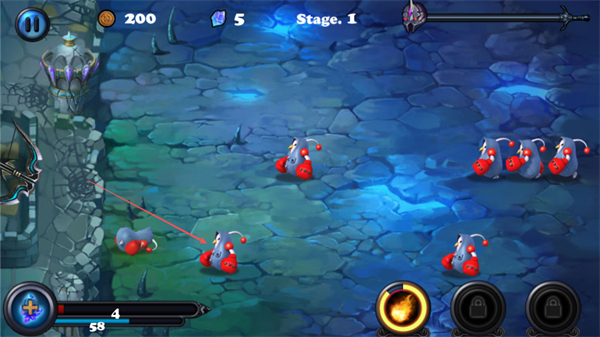 1、在Stage.1场景中,操控守卫攻击来袭的怪物,积累金币资源。