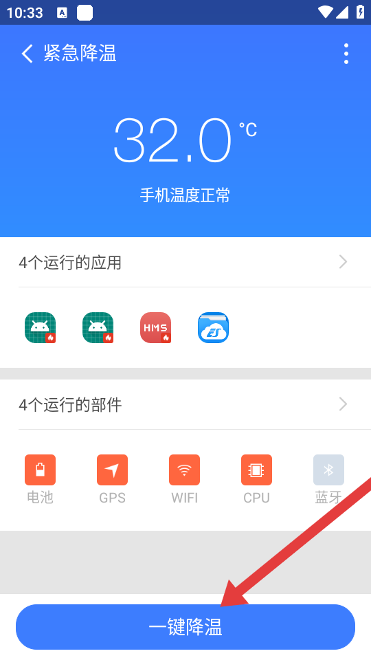 2、在紧急降温界面,点击底部蓝色的一键降温按钮,启动降温流程。