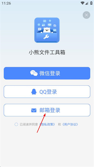 3、在登录选择界面,点击“邮箱登录”按钮,进入邮箱登录界面。