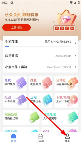 1、打开小熊文件工具箱,点击底部导航栏我的。