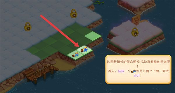 4、按照提示拖动信件,将三个信件进行合并,即可任命新镇长推进游戏进程。
