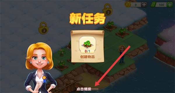 1、在“新任务”界面,通过点击继续,接受任务开始对应的游戏操作环节。