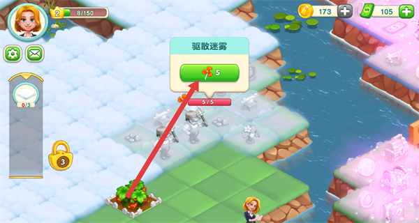 4、点击按钮消耗已拾取的道具,完成迷雾驱散,实现地图区域的扩展。