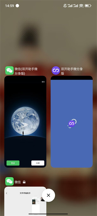 双开助手1亿+用户使用的微信分身、微信多开、应用分身大师!官方正版不封号、稳定流畅不卡顿!稳定支持刘海屏、全面屏!所有应用免费双开,年度十大装机必备App之一!
