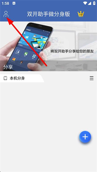 1、打开双开助手,点击页面左上角的个人中心图标。