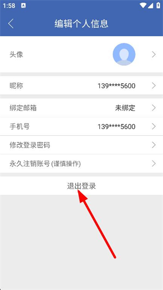 3、在编辑个人信息页面中,点击下方退出登录选项。