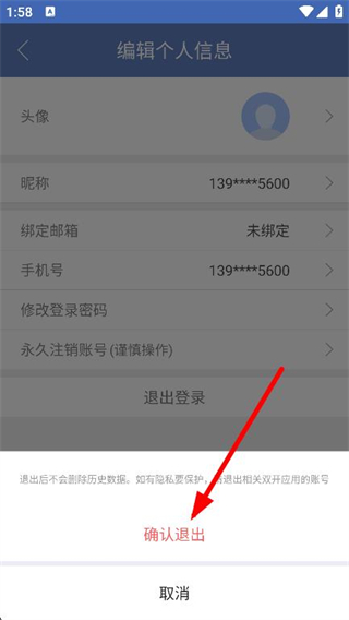 4、在提示弹窗中,点击确认退出,即可退出账号。