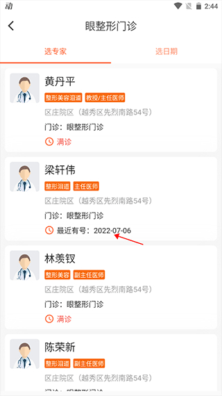 4、进入对应科室页面,选择有号源的医生。