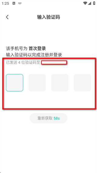 4、在输入验证码页面,在输入框输入验证码,完成注册并登录。