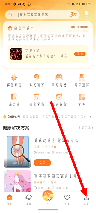 提供体质自测、慢性病风险评估、健康H值测算等服务,支持血压、血糖等指标上传与动态追踪,为个性化养生方案制定提供科学数据支撑。