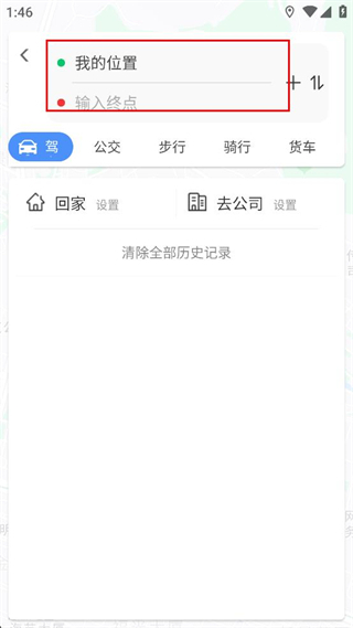 3、在路线规划页面,确认我的位置信息,再在输入终点栏填写对应的终点内容。