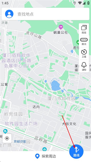 2、进入思极地图主界面后,找到页面中的路线按钮,点击该按钮进入路线规划页面。