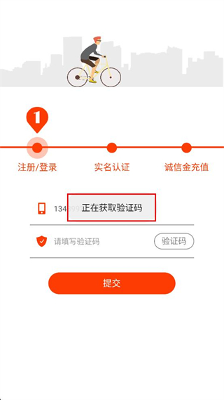 1、进入共享出行软件注册登录页面,在对应输入框填写个人的手机号码信息。